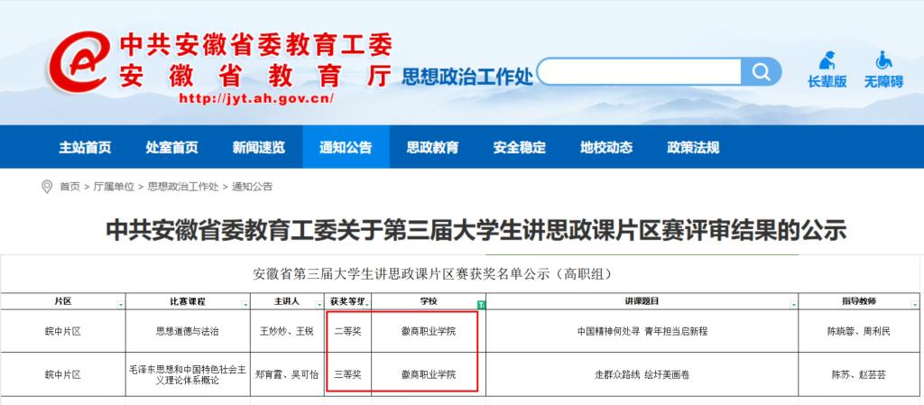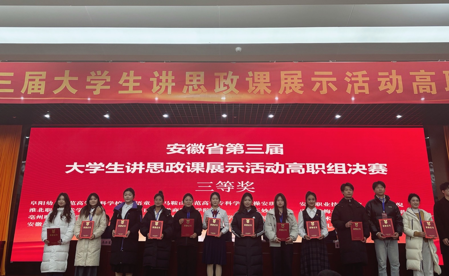 近日,安徽省第三届大学生讲思政课展示活动高职组决赛在合肥圆满落幕,经过激烈角逐,学院学子王妙妙团队荣获三等奖。